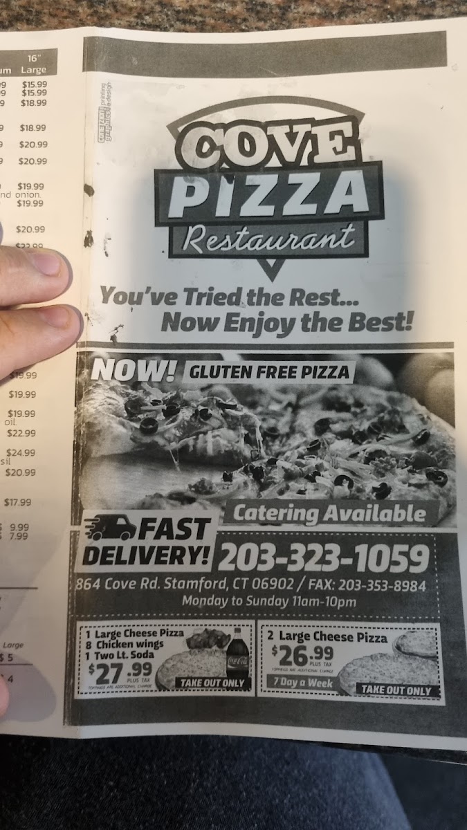 Welcome to Cove Pizza, a beloved neighborhood gem nestled at 864 Cove Rd, Stamford, CT. Here, tradition meets flavor with a diverse menu that boasts mouthwatering options. Renowned for their pizzas, patrons rave about the crispy crust and perfectly balanced sauce, often pairing them with deliciously stuffed calzones featuring rich ricotta.